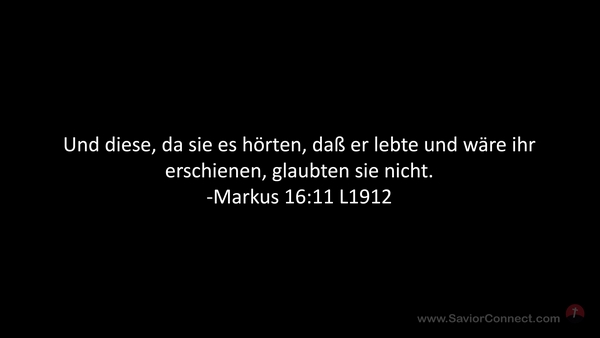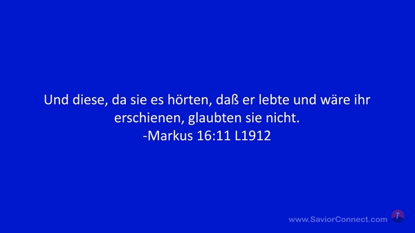 Und diese, da sie es hörten, daß er lebte und wäre ihr erschienen, glaubten sie nicht. -Markus 16:11 L1912