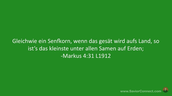 Gleichwie ein Senfkorn, wenn das gesät wird aufs Land, so ist's das kleinste unter allen Samen auf Erden; -Markus 4:31 L1912