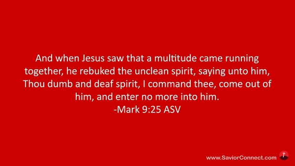 Da nun Jesus sah, daß das Volk zulief, bedrohte er den unsauberen Geist und sprach zu ihm: Du sprachloser und tauber Geist, ich gebiete dir, daß du von ihm ausfahrest und fahrest hinfort nicht in ihn! -Markus 9:25 L1912