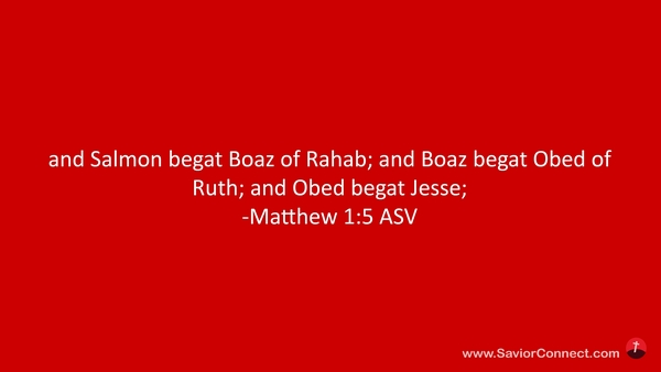 Salma zeugte Boas von der Rahab. Boas zeugte Obed von der Ruth. Obed zeugte Jesse. -Matthäus 1:5 L1912