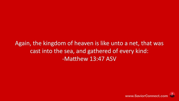 Abermals ist gleich das Himmelreich einem Netze, das ins Meer geworfen ist, womit man allerlei Gattung fängt. -Matthäus 13:47 L1912