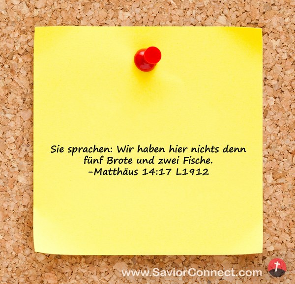 Sie sprachen: Wir haben hier nichts denn fünf Brote und zwei Fische. -Matthäus 14:17 L1912