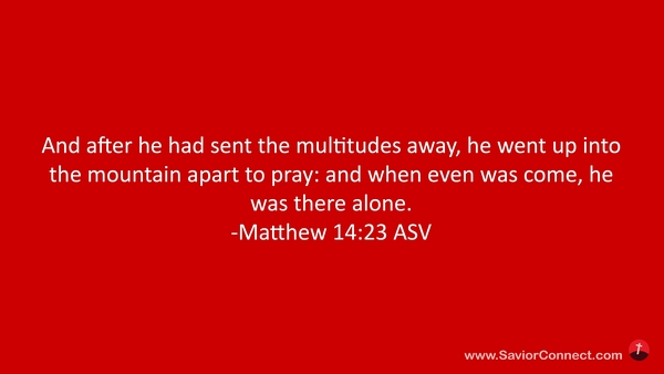 Und da er das Volk von sich gelassen hatte, stieg er auf einen Berg allein, daß er betete. Und am Abend war er allein daselbst. -Matthäus 14:23 L1912