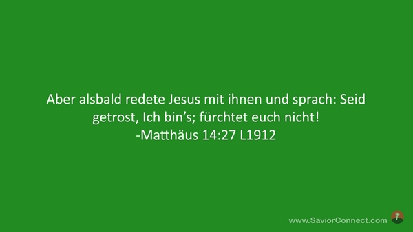 Aber alsbald redete Jesus mit ihnen und sprach: Seid getrost, Ich bin's; fürchtet euch nicht! -Matthäus 14:27 L1912