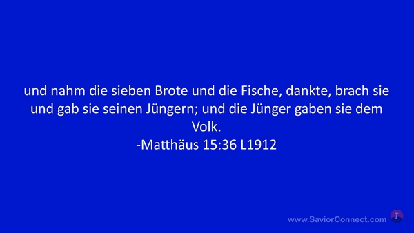 und nahm die sieben Brote und die Fische, dankte, brach sie und gab sie seinen Jüngern; und die Jünger gaben sie dem Volk. -Matthäus 15:36 L1912
