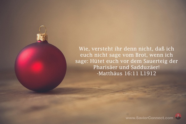 Wie, versteht ihr denn nicht, daß ich euch nicht sage vom Brot, wenn ich sage: Hütet euch vor dem Sauerteig der Pharisäer und Sadduzäer! -Matthäus 16:11 L1912