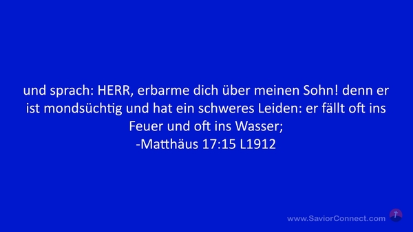 und sprach: HERR, erbarme dich über meinen Sohn! denn er ist mondsüchtig und hat ein schweres Leiden: er fällt oft ins Feuer und oft ins Wasser; -Matthäus 17:15 L1912