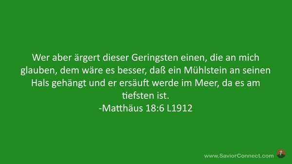 Wer aber ärgert dieser Geringsten einen, die an mich glauben, dem wäre es besser, daß ein Mühlstein an seinen Hals gehängt und er ersäuft werde im Meer, da es am tiefsten ist. -Matthäus 18:6 L1912