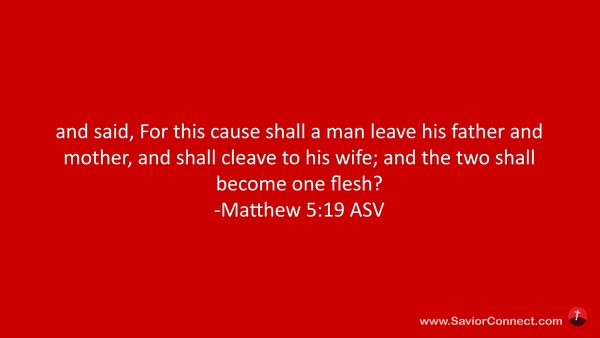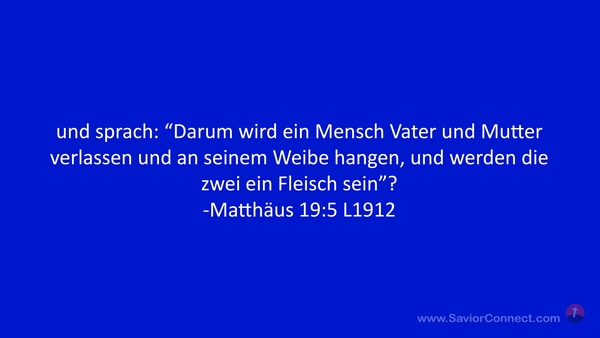 und sprach: “Darum wird ein Mensch Vater und Mutter verlassen und an seinem Weibe hangen, und werden die zwei ein Fleisch sein”? -Matthäus 19:5 L1912