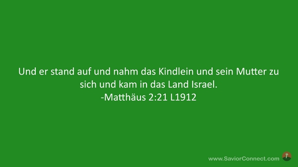 Und er stand auf und nahm das Kindlein und sein Mutter zu sich und kam in das Land Israel. -Matthäus 2:21 L1912