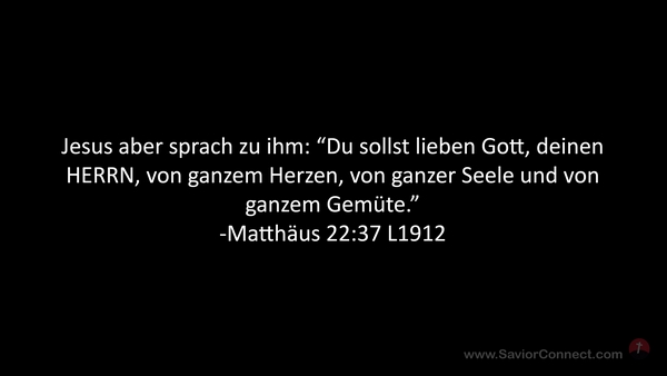 Jesus aber sprach zu ihm: “Du sollst lieben Gott, deinen HERRN, von ganzem Herzen, von ganzer Seele und von ganzem Gemüte.” -Matthäus 22:37 L1912