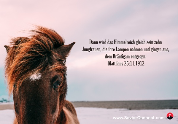 Dann wird das Himmelreich gleich sein zehn Jungfrauen, die ihre Lampen nahmen und gingen aus, dem Bräutigam entgegen. -Matthäus 25:1 L1912