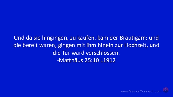 Und da sie hingingen, zu kaufen, kam der Bräutigam; und die bereit waren, gingen mit ihm hinein zur Hochzeit, und die Tür ward verschlossen. -Matthäus 25:10 L1912