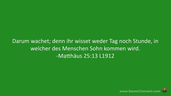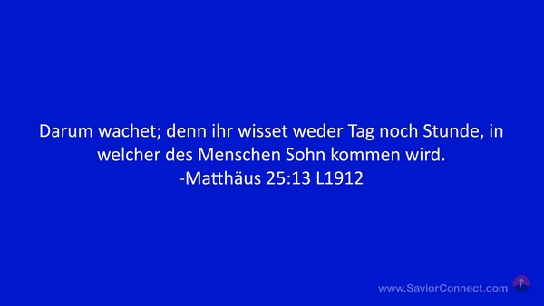 Darum wachet; denn ihr wisset weder Tag noch Stunde, in welcher des Menschen Sohn kommen wird. -Matthäus 25:13 L1912