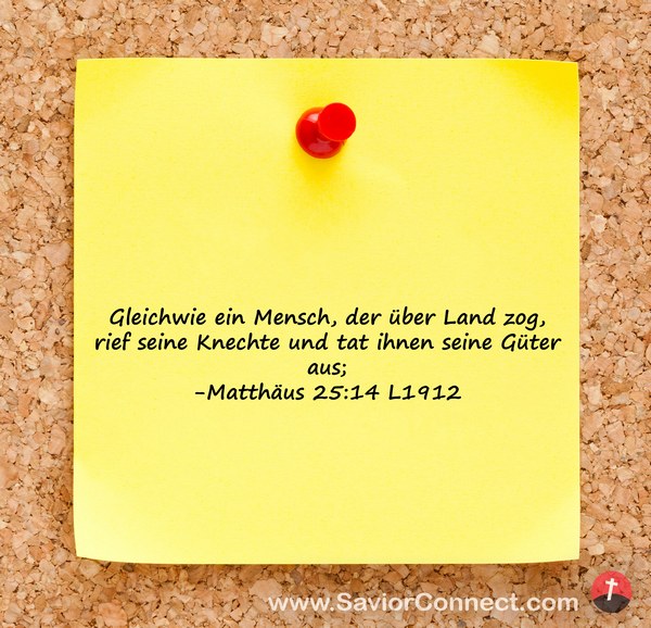 Gleichwie ein Mensch, der über Land zog, rief seine Knechte und tat ihnen seine Güter aus; -Matthäus 25:14 L1912