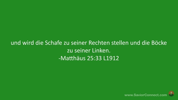 und wird die Schafe zu seiner Rechten stellen und die Böcke zu seiner Linken. -Matthäus 25:33 L1912