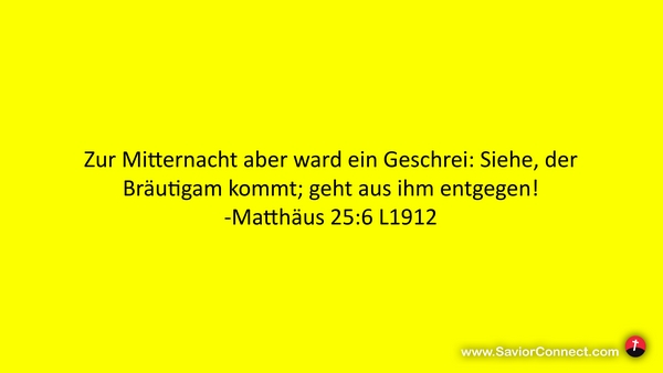 Zur Mitternacht aber ward ein Geschrei: Siehe, der Bräutigam kommt; geht aus ihm entgegen! -Matthäus 25:6 L1912