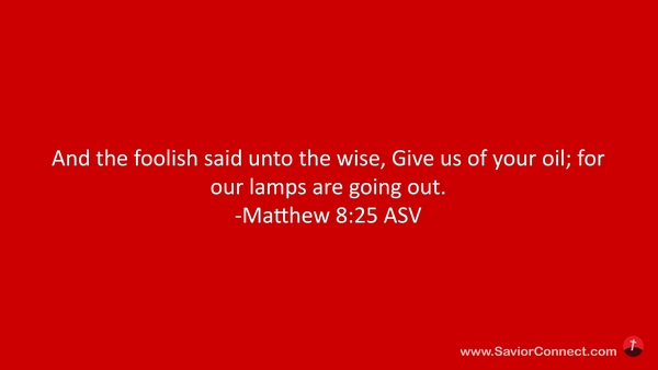 Die törichten aber sprachen zu den klugen: Gebt uns von eurem Öl, denn unsere Lampen verlöschen. -Matthäus 25:8 L1912