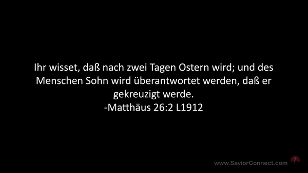 Ihr wisset, daß nach zwei Tagen Ostern wird; und des Menschen Sohn wird überantwortet werden, daß er gekreuzigt werde. -Matthäus 26:2 L1912