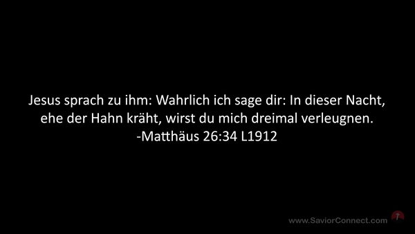 Jesus sprach zu ihm: Wahrlich ich sage dir: In dieser Nacht, ehe der Hahn kräht, wirst du mich dreimal verleugnen. -Matthäus 26:34 L1912