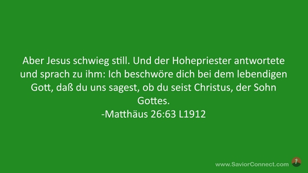 Aber Jesus schwieg still. Und der Hohepriester antwortete und sprach zu ihm: Ich beschwöre dich bei dem lebendigen Gott, daß du uns sagest, ob du seist Christus, der Sohn Gottes. -Matthäus 26:63 L1912