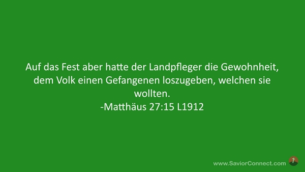 Auf das Fest aber hatte der Landpfleger die Gewohnheit, dem Volk einen Gefangenen loszugeben, welchen sie wollten. -Matthäus 27:15 L1912