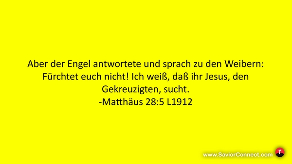 Aber der Engel antwortete und sprach zu den Weibern: Fürchtet euch nicht! Ich weiß, daß ihr Jesus, den Gekreuzigten, sucht. -Matthäus 28:5 L1912