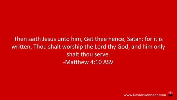 Da sprach Jesus zu ihm: Hebe dich weg von mir Satan! denn es steht geschrieben: “Du sollst anbeten Gott, deinen HERRN, und ihm allein dienen.” -Matthäus 4:10 L1912