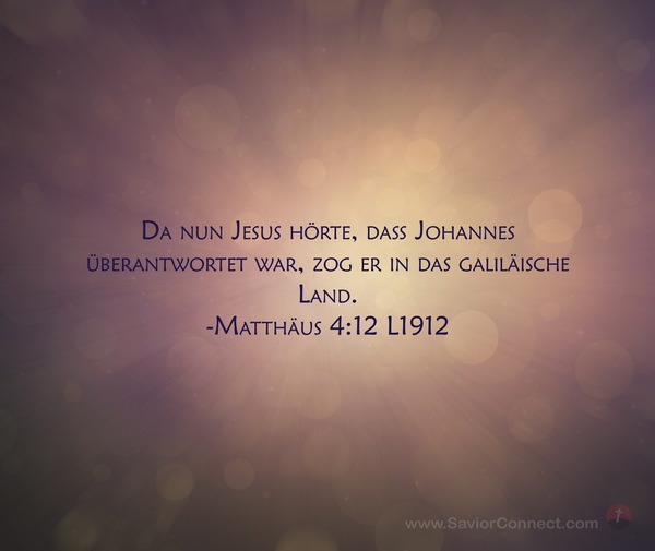 Da nun Jesus hörte, daß Johannes überantwortet war, zog er in das galiläische Land. -Matthäus 4:12 L1912