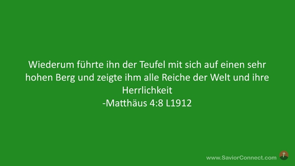 Wiederum führte ihn der Teufel mit sich auf einen sehr hohen Berg und zeigte ihm alle Reiche der Welt und ihre Herrlichkeit -Matthäus 4:8 L1912