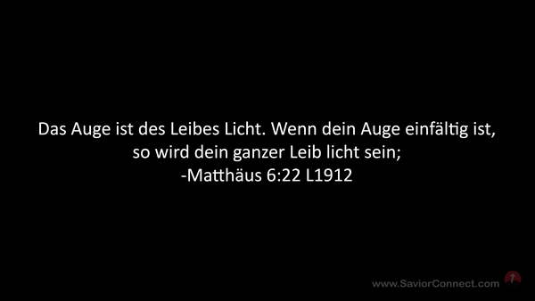 Das Auge ist des Leibes Licht. Wenn dein Auge einfältig ist, so wird dein ganzer Leib licht sein; -Matthäus 6:22 L1912