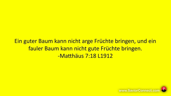 Ein guter Baum kann nicht arge Früchte bringen, und ein fauler Baum kann nicht gute Früchte bringen. -Matthäus 7:18 L1912