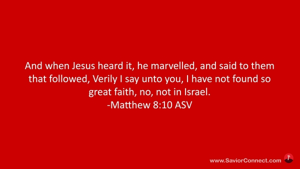 Da das Jesus hörte, verwunderte er sich und sprach zu denen, die ihm nachfolgten: Wahrlich ich sage euch: Solchen Glauben habe ich in Israel nicht gefunden! -Matthäus 8:10 L1912