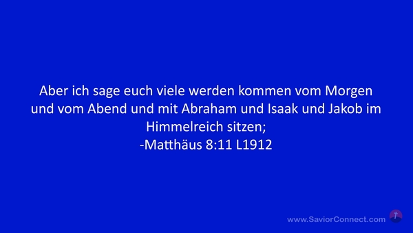 Aber ich sage euch viele werden kommen vom Morgen und vom Abend und mit Abraham und Isaak und Jakob im Himmelreich sitzen; -Matthäus 8:11 L1912