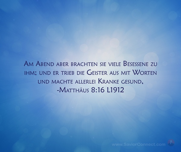Am Abend aber brachten sie viele Besessene zu ihm; und er trieb die Geister aus mit Worten und machte allerlei Kranke gesund, -Matthäus 8:16 L1912