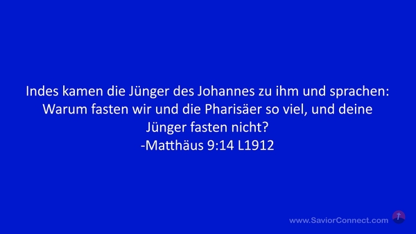 Indes kamen die Jünger des Johannes zu ihm und sprachen: Warum fasten wir und die Pharisäer so viel, und deine Jünger fasten nicht? -Matthäus 9:14 L1912