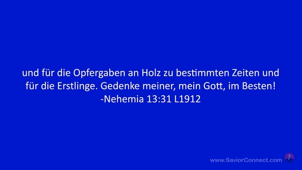 und für die Opfergaben an Holz zu bestimmten Zeiten und für die Erstlinge. Gedenke meiner, mein Gott, im Besten! -Nehemia 13:31 L1912