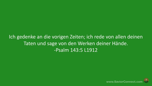 Ich gedenke an die vorigen Zeiten; ich rede von allen deinen Taten und sage von den Werken deiner Hände. -Psalm 143:5 L1912