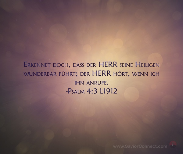 Erkennet doch, daß der HERR seine Heiligen wunderbar führt; der HERR hört, wenn ich ihn anrufe. -Psalm 4:3 L1912