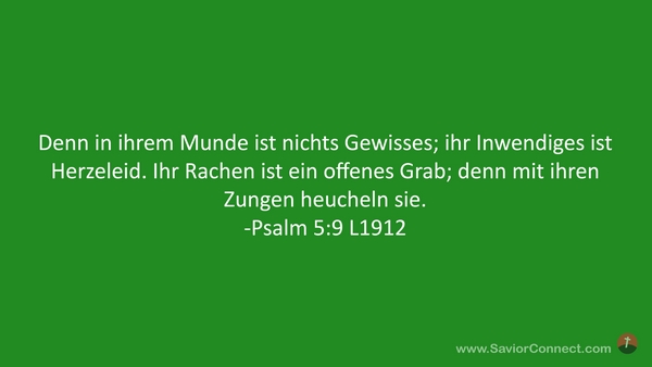 Denn in ihrem Munde ist nichts Gewisses; ihr Inwendiges ist Herzeleid. Ihr Rachen ist ein offenes Grab; denn mit ihren Zungen heucheln sie. -Psalm 5:9 L1912