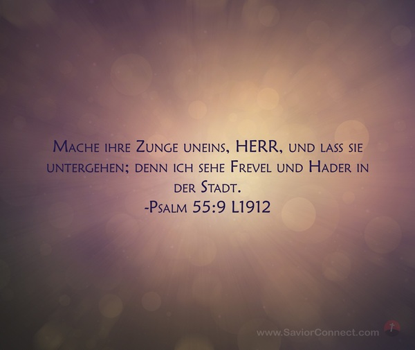 Mache ihre Zunge uneins, HERR, und laß sie untergehen; denn ich sehe Frevel und Hader in der Stadt. -Psalm 55:9 L1912