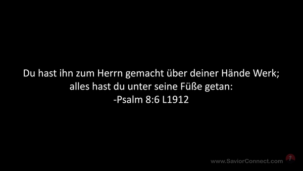 Du hast ihn zum Herrn gemacht über deiner Hände Werk; alles hast du unter seine Füße getan: -Psalm 8:6 L1912