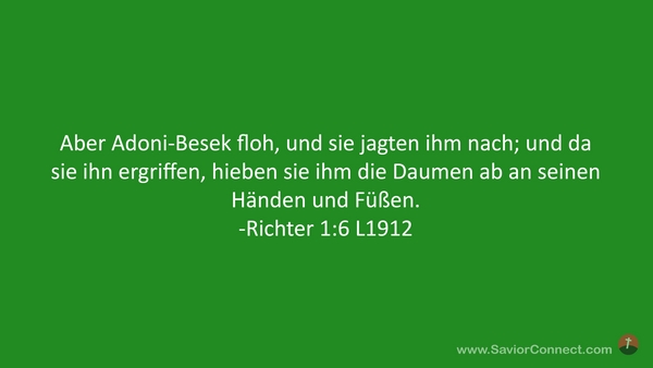 Aber Adoni-Besek floh, und sie jagten ihm nach; und da sie ihn ergriffen, hieben sie ihm die Daumen ab an seinen Händen und Füßen. -Richter 1:6 L1912