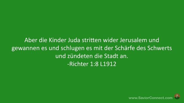 Aber die Kinder Juda stritten wider Jerusalem und gewannen es und schlugen es mit der Schärfe des Schwerts und zündeten die Stadt an. -Richter 1:8 L1912