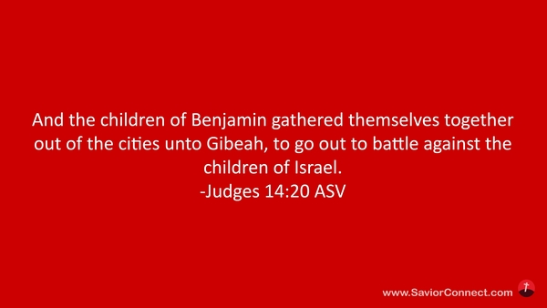 sondern versammelten sich aus den Städten gen Gibea, auszuziehen in den Streit wider die Kinder Israel. -Richter 20:14 L1912