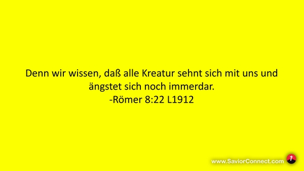 Denn wir wissen, daß alle Kreatur sehnt sich mit uns und ängstet sich noch immerdar. -Römer 8:22 L1912