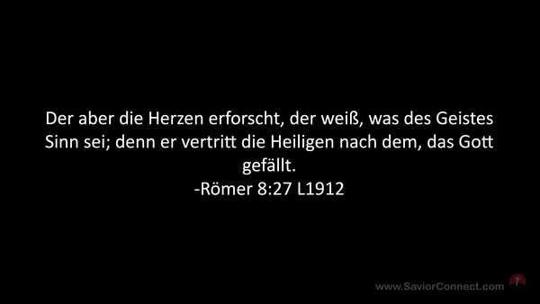 Der aber die Herzen erforscht, der weiß, was des Geistes Sinn sei; denn er vertritt die Heiligen nach dem, das Gott gefällt. -Römer 8:27 L1912