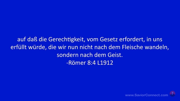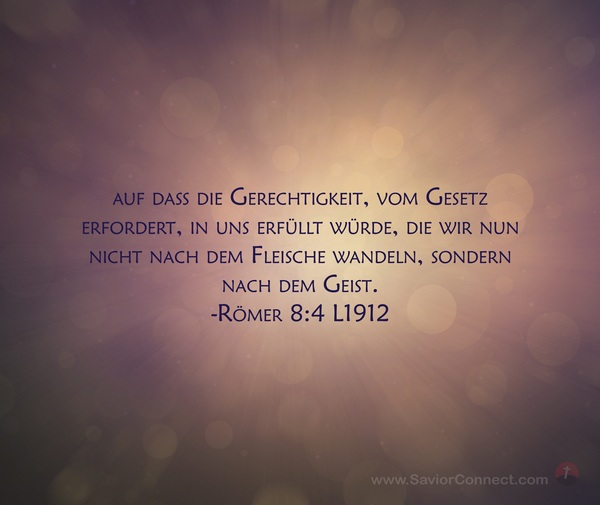 auf daß die Gerechtigkeit, vom Gesetz erfordert, in uns erfüllt würde, die wir nun nicht nach dem Fleische wandeln, sondern nach dem Geist. -Römer 8:4 L1912