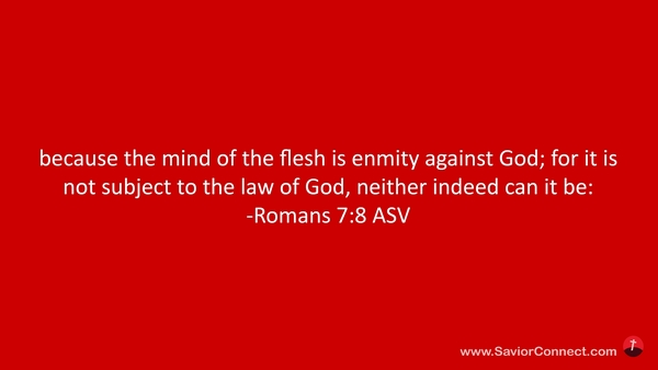 Denn fleischlich gesinnt sein ist wie eine Feindschaft wider Gott, sintemal das Fleisch dem Gesetz Gottes nicht untertan ist; denn es vermag's auch nicht. -Römer 8:7 L1912