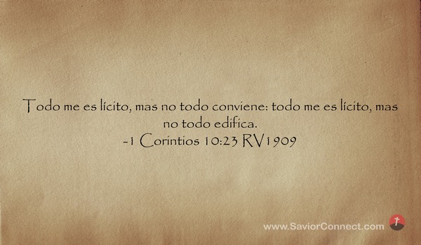Todo me es lícito, mas no todo conviene: todo me es lícito, mas no todo edifica. -1 Corintios 10:23 RV1909